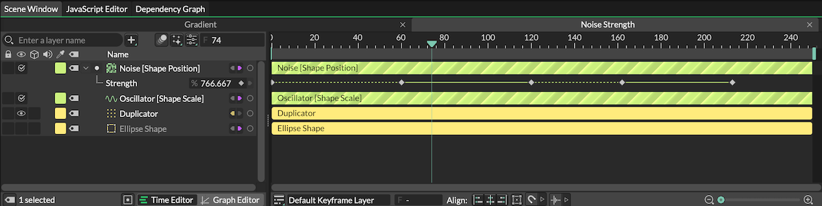 ↑ utilisés :NoiseetOscillator+ images-clés sur le paramètreStrengthduNoise`