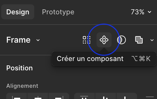 - Cliquer sur l'icône Créer un composant. Raccourci :